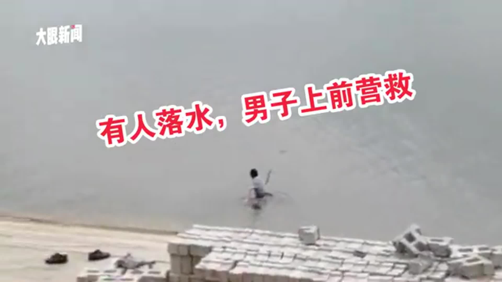 路见不平拔刀相助!散步路过湖边见人落水,男子奋不顾身下水救人