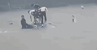近日,河南郑州特大暴雨中一辆车被洪水围住