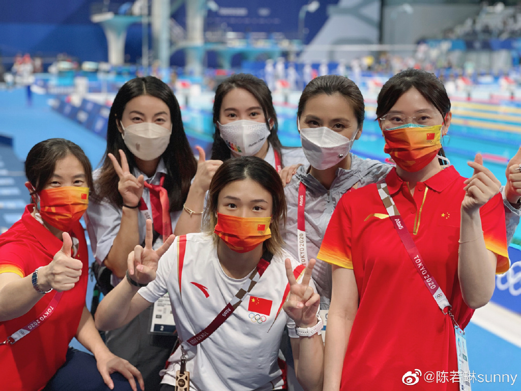 东京奥运会女子双人十米台决赛,郭晶晶、陈若琳现场见证了陈芋汐/张家齐夺冠,尤其是陈若琳,两位年龄只有15岁和17岁的小花可以说是她的直系师妹。最终,陈芋汐/张家齐以超过50分的巨大优势折桂,在冠军领奖台上绽放最美笑容,一洗此前男子双人十米台1.23分意外丢金的阴霾。