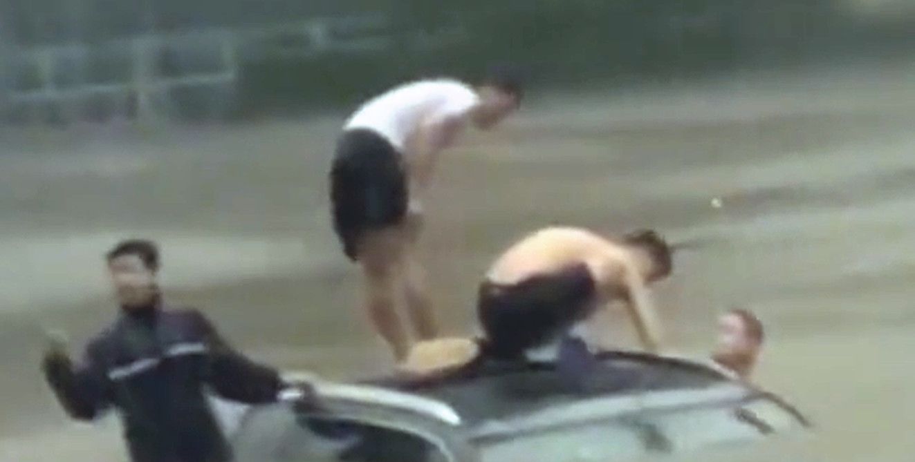 卢先生用菜刀硬生生将车辆的天窗砍碎,让车内可以透气,之后大家合力砸开了车的风挡玻璃,将被困的三人一一救出,并用塑料大桶将不会游泳的小孩子运到安全地带。
