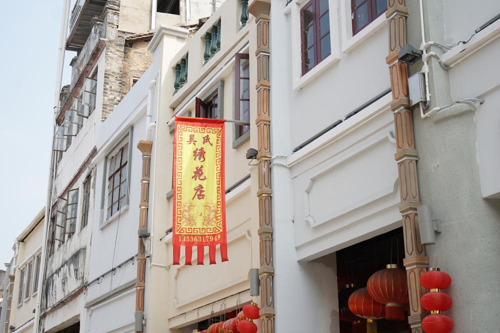 位于水东东路50号的镇记号,是目前水东街商铺中改动最少、一直保留着民国特色的店铺。记者留意到,商铺招牌上的字被涂掉,隐约能够识别是“镇记号”三个大字。据了解,原先该店是经营茶叶生意,但后来转行卖香纸烛宝,如今大门一直紧闭。