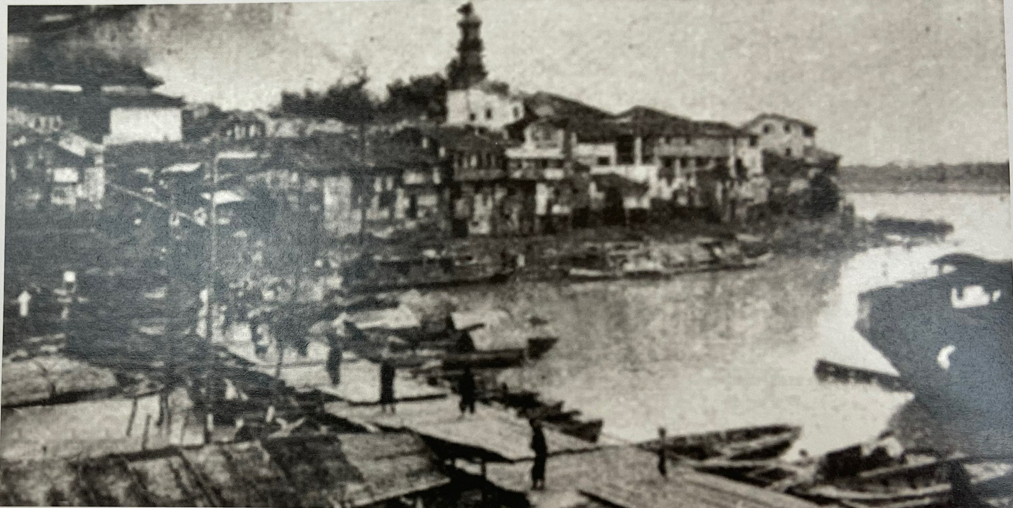 从水东街西望东新浮桥和大东门,东江河道运输繁忙 图片源自《惠州近代历史图录》壹