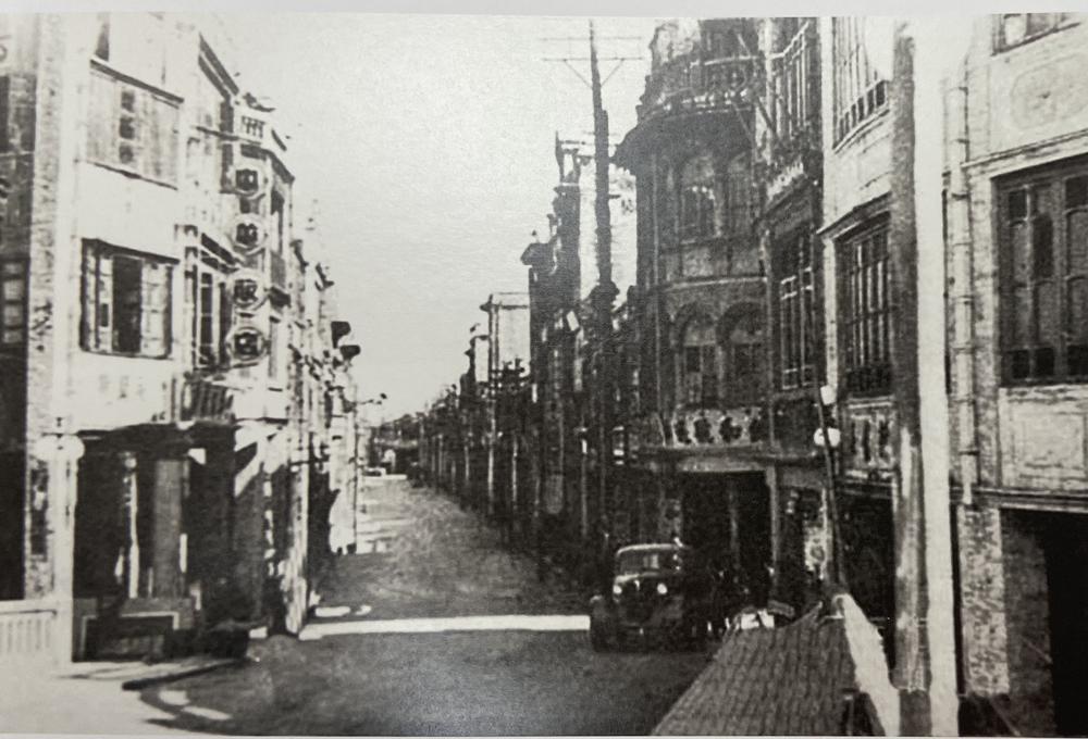 1938年从包公巷东望的水东街东段,图右第一间店铺是惠州历史最为悠久的西药房世宝堂,坊间有“先有世宝堂,后有水东街”的说法 图片源自《惠州近代历史图录》?