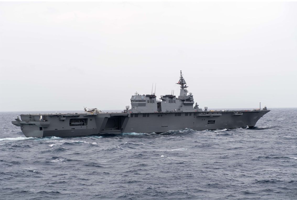 哪艘日本军舰将迎接美军战机?美媒称,当前唯一的答案是日本海上自卫队的“出云”号“直升机护卫舰”。这艘排水量2.4万吨的战舰具备与美军两栖攻击舰相似的全通式飞行甲板,今年夏天完成了耗资2.8亿美元的第一阶段改装,变身为能够运行固定翼飞机的“准航母”。
