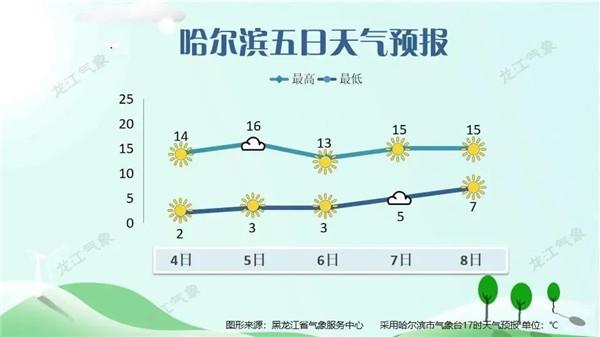 4日白天最高气温:大兴安岭北部、黑河、伊春10~12℃,其它地区12~14℃。