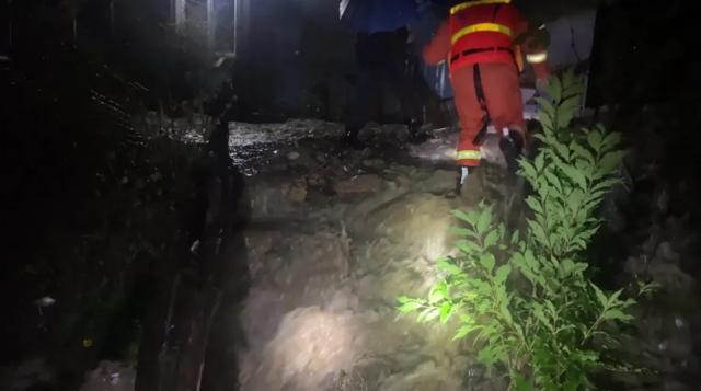 18时40分,救援人员到达现场,经现场勘查后发现,一条小溪因长时间强降雨,导致水位迅速上涨,水流湍急,半山腰和山脚下有2户人家,共计8名群众在家中无法出门。