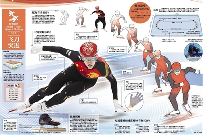 短道速滑:必须戴安全头盔,冰刀为封闭式。