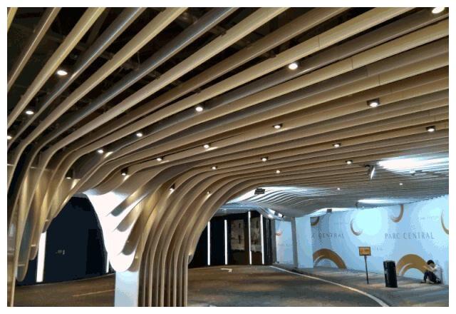 这里是负一层的小车或出租车下客点,这个位置居然设计成了著名的风水布局刀片阵。顾名思义该刀片是用来刮油水的。负一层大部分是消费品商铺区,琳琅满目,如果你是想来shopping的,建议不要打车过来,否则一下车就被这漫天的刀片镇住了。只要你进来,必刮你一层油水!