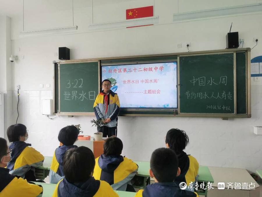 在菏泽市牡丹区第二十二初级中学的“节约用水”主题班会课堂上,老师们通过ppt课件展示,介绍了“世界水日”、“中国水周”的来历和意义。学生在活动过程中了解了水对于生命的重要意义,认识到当前水问题的严峻形势,纷纷表示要从自身做起,保护水资源,维护生命健康。