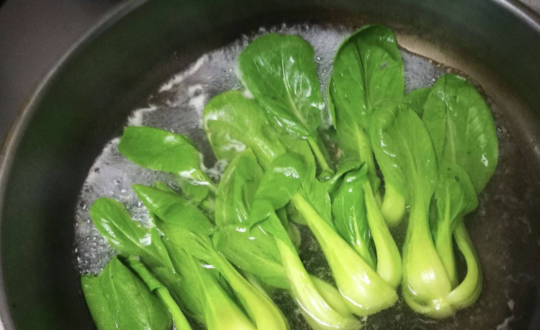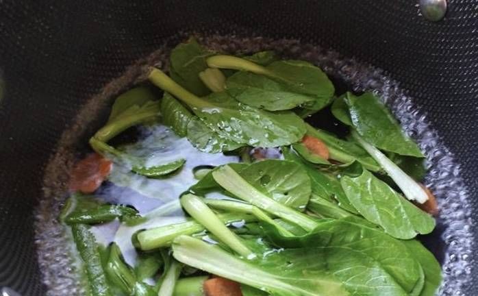 6.增加光泽度:为了隔绝空气,青菜焯水时往往会加入几滴食用油,这些油会沾在青菜表面,增加光泽度。